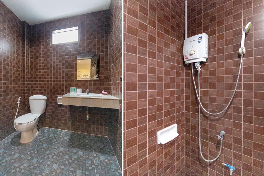 В номере не было холодильника, мебель ободранная так что с нее сыпятся опилки из ДСП, выглядит как будто с помойки. Номер темный, одна лампочка, вторая не работает. Уборка один раз за неделю. Полотенца при въезде не было, еле выпросил. В номере муравьи, в санузле мелкие жучки, которые везде ползают, в том числе по зубной щетке вашей, а еще гекконы, которые могут вам на голову свалиться, что со мной и произошло. Очень шумно даже в берушах. Раковина в санузле одновременно протекает на пол и вода в слив не уходит, хозяину пофиг. Общая разруха до которой хозяевам нет дела.