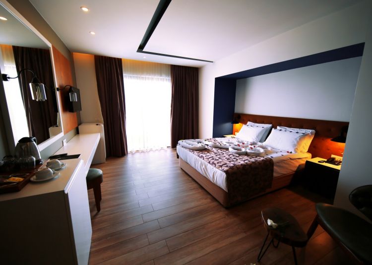В стандартном номере есть балкон с видом на море, кондиционер, телевизор, мини-бар, сейф, телефон. Предназначен для комфортного размещения 3 человек на двуспальной и односпальной кроватях. Ванная комната с душем феном, туалетно-косметическими принадлежностями.